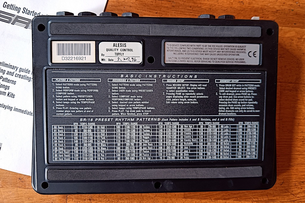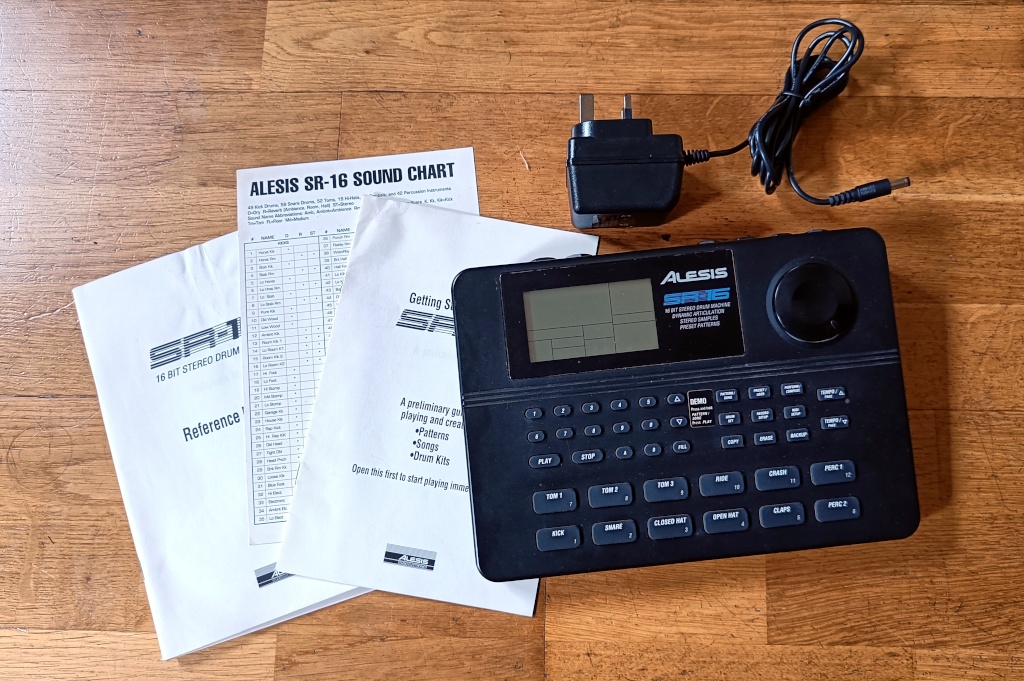This is a vintage Alesis SR16 drum machine, v1.04, from 1996 which has only seen home studio use and is in mint condition.