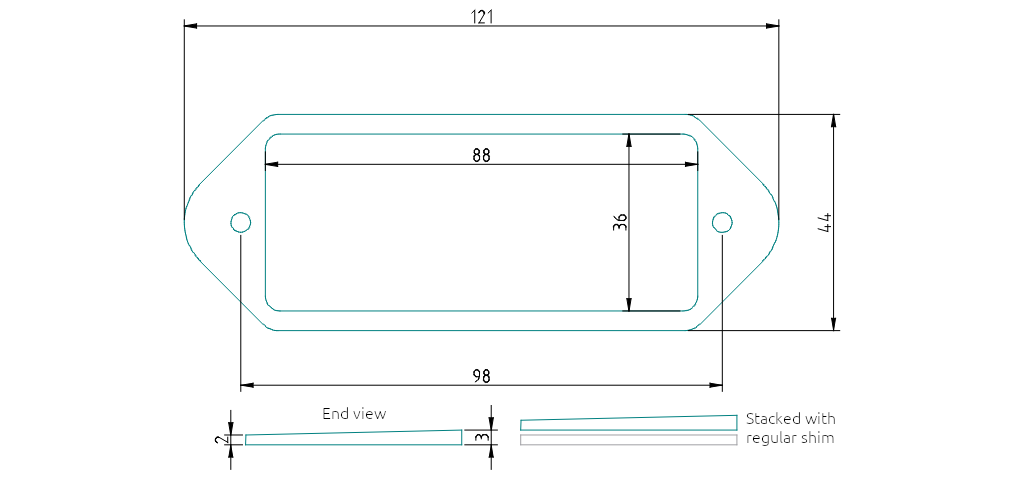Important: Please check your pickup dimensions against the diagram below before ordering to make sure they will fit. If your pickup’s dimensions do not match any of the diagrams please contact us as we are able make shims to suit your pickups.
